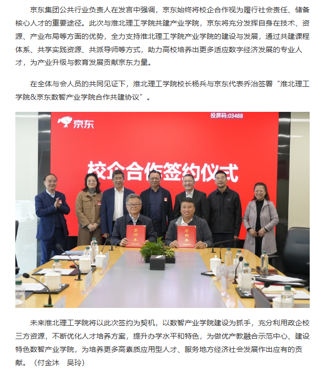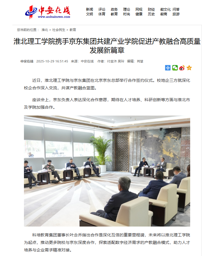 近日,beat365英国官方网站与京东集团在北京京东总部举行合作签约仪式。校地企三方就深化校企合作深入交流,共谋产教融合蓝图。对此,中安在线进行了报道: