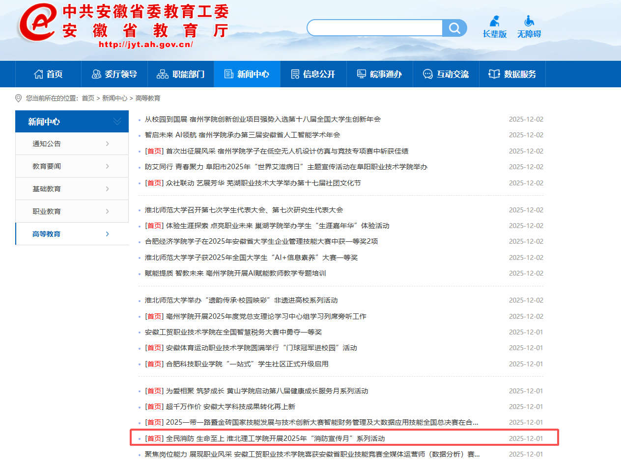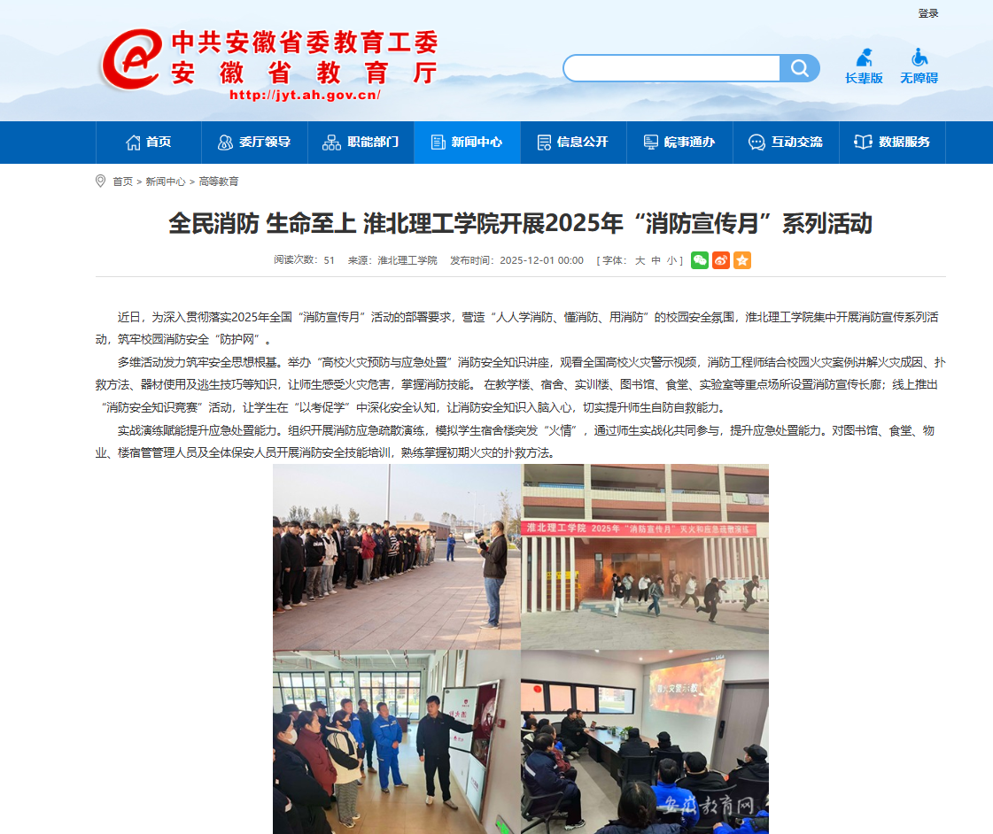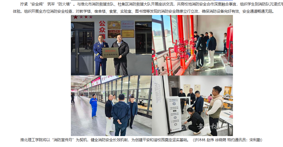 近日,为深入贯彻落实2025年全国“消防宣传月”活动的部署要求,营造“人人学消防、懂消防、用消防”的校园安全氛围,beat365英国官方网站集中开展消防宣传系列活动,筑牢校园消防安全“防护网”。对此,安徽教育网进行了报道: