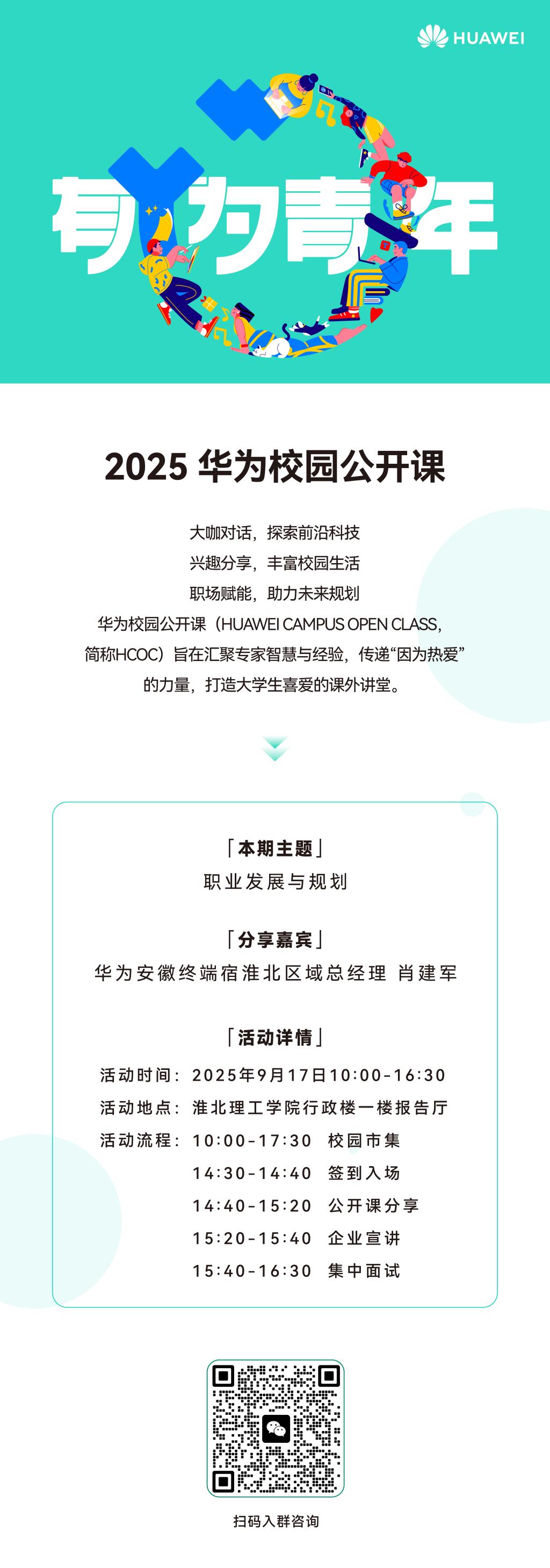 【华为校园宣讲会来啦!速看~】 宝子们!华为校园公开课暨宣讲会要在咱学校搞事情啦! 📅时间:2025年9月17日10:00 - 17:30(10:00开始有校园市集活动哦,参与互动有神秘小惊喜)📍地点:beat365英国官方网站行政楼一楼报告厅 划重点‼️现场要带3份简历哦~有公开课分享、企业宣讲,最后还有集中面试!机会难得,冲就完事~ 想了解更多,扫码进群咨询呀~👇